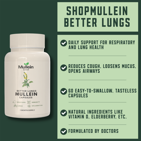 Our ShopMullein ingredients were selected with smokers’ lung health in mind. The inspiration came from our founder’s desire to support loved ones dealing with smoking-related lung issues and chronic conditions like bronchitis and COPD